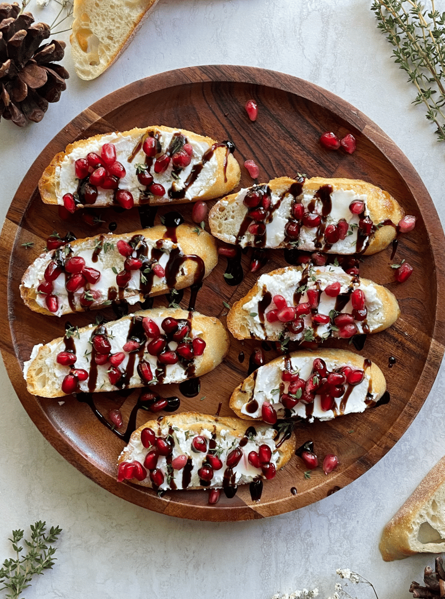 - Balsamic Pomegranate Crostini with Goat Cheese
