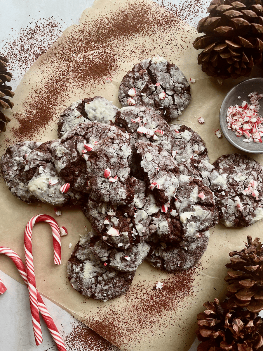 Bake for 10-12 minutes, then sprinkle with extra crushed candy canes. Allow the cookies to cool on the baking sheet for a couple of minutes before transferring to a cooling rack.