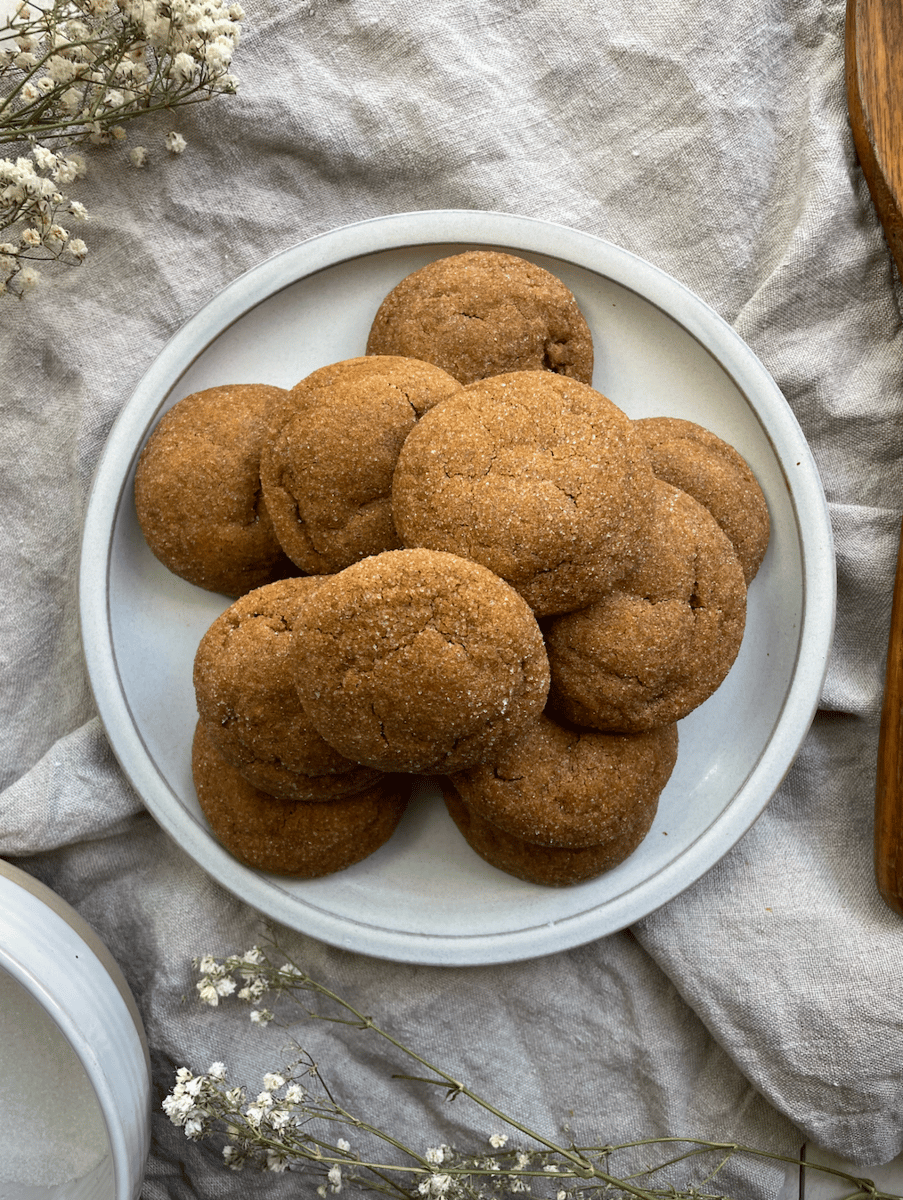 Scoop the dough into rounded tablespoons and roll it into balls. Coat each ball in the granulated sugar and place 2” apart on the prepared baking sheet.